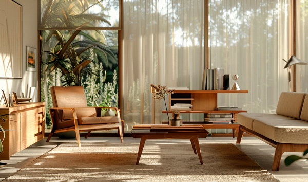O Mid-Century Modern é conhecido por suas linhas elegantes e design funcional, refletindo uma época que valorizava a natureza, a simplicidade e a inovação. As peças desse estilo são marcadas por sua estética minimalista e pelo uso de materiais naturais, como madeira e couro, criando uma interação harmoniosa e moderna.