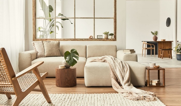 A tendência é caracterizada pela utilização de matérias-primas naturais, como madeira, bambu e vime. A paleta de cores é neutra, com tons de branco, cinza claro, tons pastéis e areia, além disso, os tons terrosos também são muito utilizados.