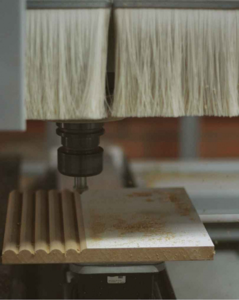 Diferente do ripado em laca, que pode ser produzido por usinagem direta, o ripado boleado em lâmina natural é montado peça a peça.